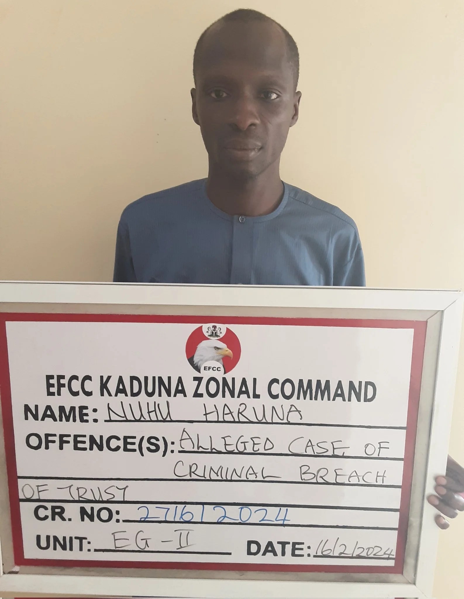 Haruna was arraigned by the EFCC’s Kaduna Zonal Directorate on a two-count charge of advance fee fraud and obtaining money under false pretences.