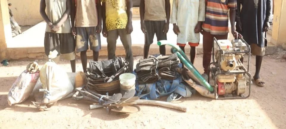 Recovered items included two water pump engines, fourteen carpets, six shovels, three diggers, two pipes, and seven head pans. All suspects have been transferred to the State Criminal Investigation Department (SCID) for further investigation.